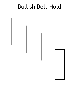 BULLISH BELT HOLD PATTERN (BBHP) a White Opening Marubozu during a downtrend Characteristics: 1. Overall, the market is on a
